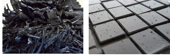 (左: “块状”粉末, 右: 自粘“地毯”)